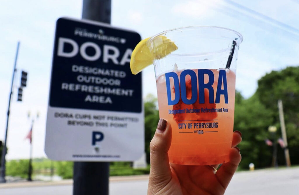 The Downtown Outdoor Refreshment Area (DORA) launched in 2017, and was expanded in July of 2020 to include the Central Business District, Warehouse District, east and west riverfronts, The Docks and Summit Street between Cherry and Bush. DORA allows patrons of one of the 30+ participating restaurants, pubs and entertainment venues to carry up to 16 oz. of an open alcoholic beverage in a designated cup.